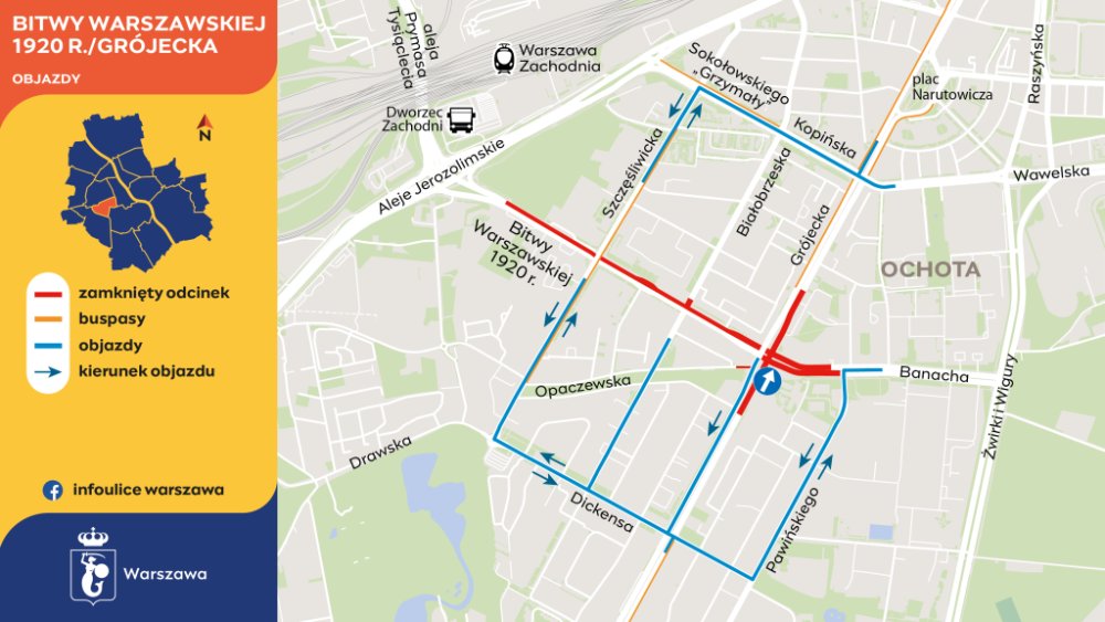 - Z ulicy Bitwy Warszawskiej 1920 r. będzie można skręcić w lewo lub w prawo w Grójecką.