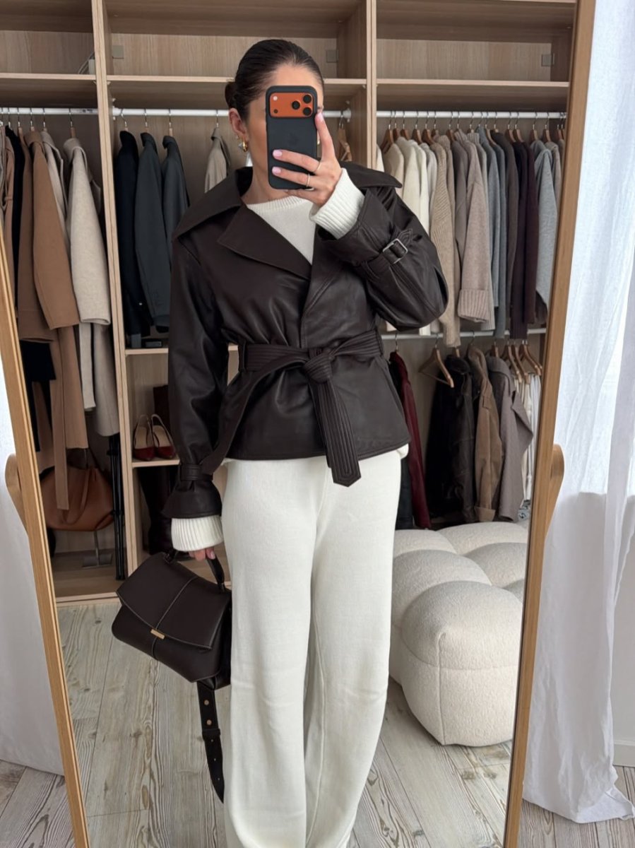 Jednak w dni, kiedy potrzebujemy czegoś więcej, Capsuleless sugeruje sięgnięcie po kurtki skórzane, które dodają stylizacjom charakteru. Jeśli natomiast szukamy alternatywy dla klasycznej marynarki, idealnym wyborem będzie kardigan. Jak podkreśla Magdalena, kardigan jest świetnym zamiennikiem marynarki, który również wygląda elegancko, a stylizacja zyskuje dzięki niemu jeszcze bardziej wyrafinowany wydźwięk. To rozwiązanie wpisuje się w potrzebę komfortu, która dominuje w tym sezonie.