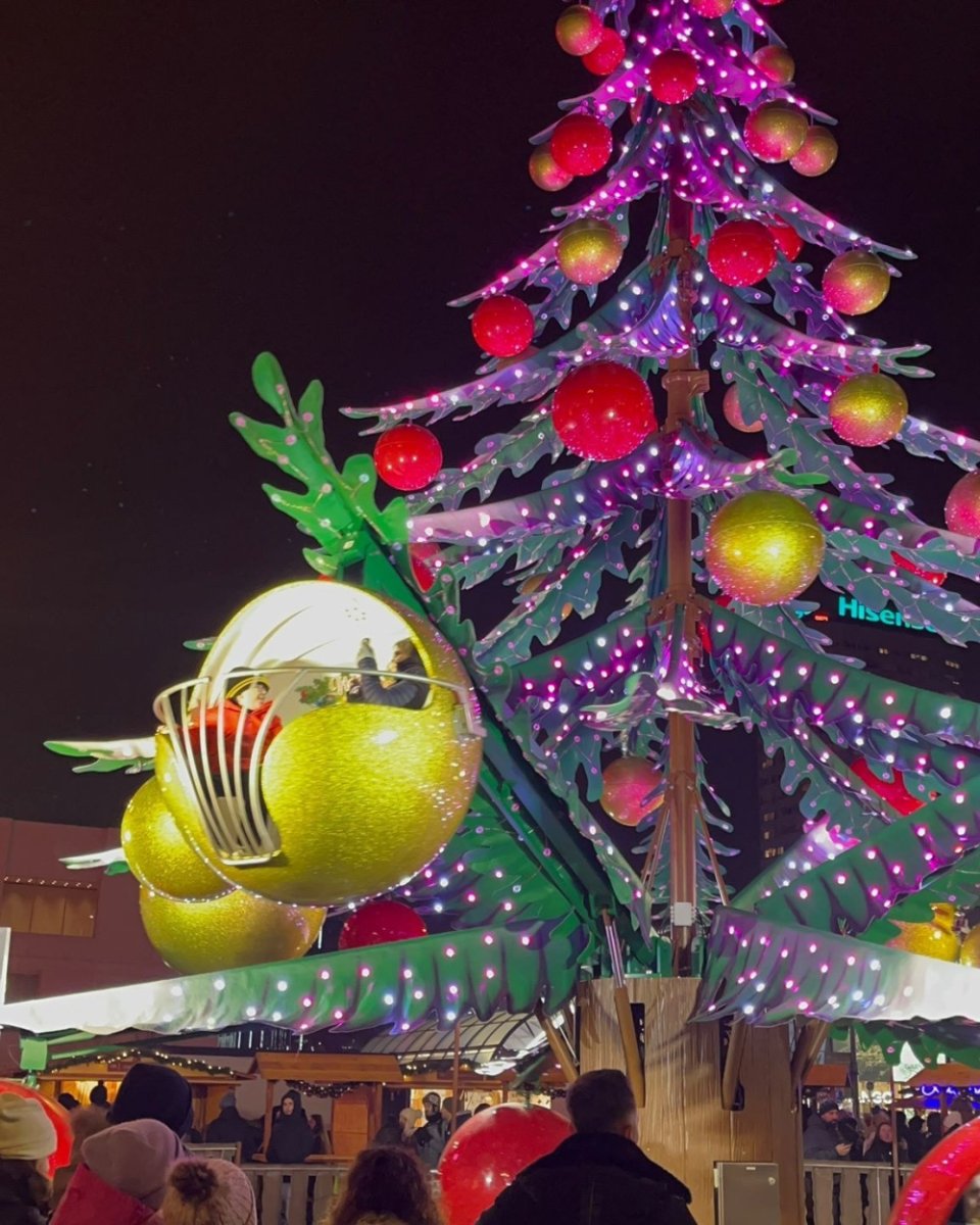 Jednak najbardziej charakterystycznym punktem jarmarku bardzo szybko stał się górujący nad wszystkimi domkami 55-metrowy diabelski młyn, największy w Europie. Kolejki ustawiały się tu nieprzerwanie. Za bilet na diabelski młyn dla dziecka do 120cm trzeba zapłacić 30zł, dla dorosłego 45zł. Jest także możliwość wykupienia gondoli VIP. Obok kręciła się karuzela wenecka i karuzela w kształcie choinki, za którą trzeba zapłacić 20zł. Po sąsiedzku słychać było także okrzyki ekscytacji przy stoiskach z grami zręcznościowymi. Jeden strzał do kosza kosztował 15 zł, natomiast pięć prób 50 zł. Chętnych nie brakowało.
