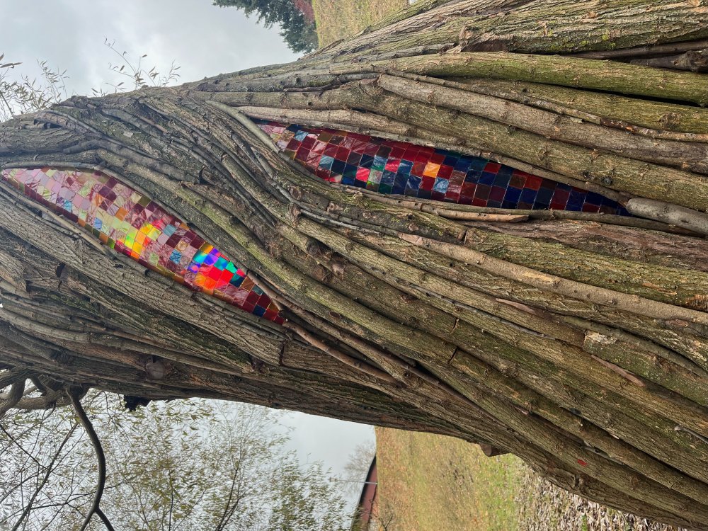 Jan Sajdak: Wierzba, która rosła w tym miejscu, była bardzo okazała, choć krucha. Złamała się około dziesięć lat temu, na wysokości czterech metrów. Został jednak żywy pień, z którego wciąż wyrastały nowe gałęzie. Z czasem pojawił się pomysł, by drzewo całkowicie usunąć, ale na szczęście do tego nie doszło. Wtedy zacząłem zastanawiać się, co mogę zrobić, by podkreślić jej wyjątkowość. Chciałem pokazać, że to nie drewniany „złom”, lecz coś, co wciąż ma symboliczne znaczenie, tak jak wierzby w wierzeniach naszych przodków.