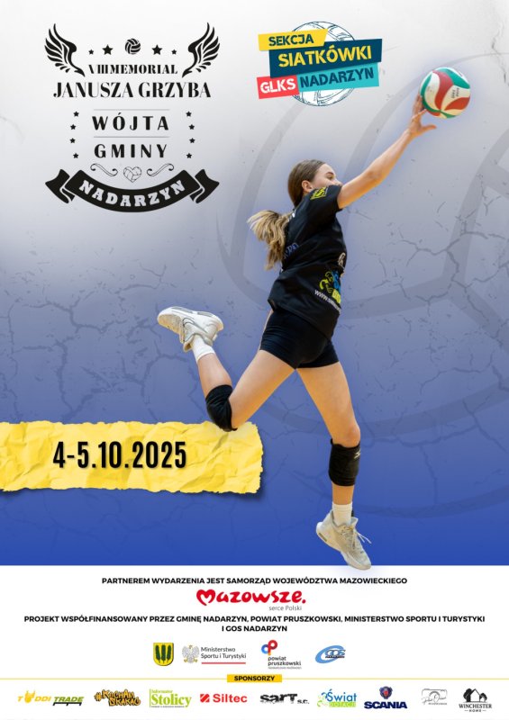 Dla kibiców siatkówki, ale także mieszkańców gminy to niezwykła okazja, aby zobaczyć siatkówkę na najwyższym młodzieżowym poziomie. Uczestniczki memoriału zagrają w trzech kategoriach wiekowych. – W sobotę rozpoczniemy od zmagań w kategorii U12 dziewcząt. Na parkiecie zobaczymy aż 60 zespołów, czyli ponad 200 młodych siatkarek z całej Polski. Po południu rywalizować będą zawodniczki z kategorii U14. W tym turnieju wystartują 32 drużyny, również liczące ponad 200 uczestniczek. Niedziela należeć będzie do siatkarek U13, tu zaprezentuje się 40 zespołów, co oznacza kolejne dwieście utalentowanych dziewcząt. W sumie w ciągu dwóch dni gościć będziemy zespoły z 11 województw, a nasza hala zamieni się w prawdziwe centrum młodzieżowej siatkówki w Polsce – przekonuje prezes Krzemiński i dodaje: – Tak duże wydarzenie nie mogłoby się odbyć bez wsparcia partnerów i sponsorów. Partnerem głównym wydarzenia jest Samorząd Województwa Mazowieckiego, a współorganizację wspierają Gmina Nadarzyn, Ministerstwo Sportu i Turystyki oraz Powiat Pruszkowski. Partnerem medialnym naszej inicjatywy jest Informator Stolicy. Dziękujemy sponsorom: Decathlon Łódź, SART, todditrade.pl, Scania Polska, Osiedle Czarny Las, Park Rozrywki KochamSkakać – Warszawa, a także partnerowi technicznemu – GOS Nadarzyn. To dzięki Wam możemy stworzyć turniej na tak wysokim poziomie.