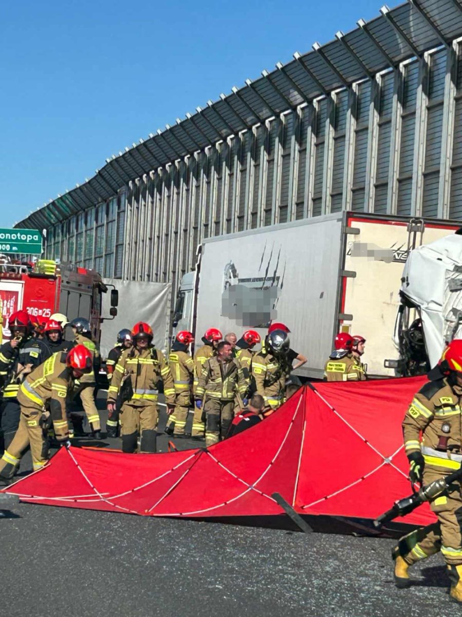 Groźny wypadek na S2: ciężarówka uderzyła w TiRa, kobieta uwięziona w pojeździe