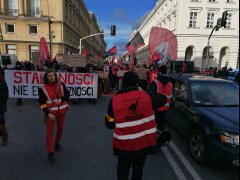 Demonstrujący rozpoczęli swoje zgromadzenie przed Pałacem Prezydenckim, skąd udali się pod siedzibę Kancelarii Prezesa Rady Ministrów. Ani przez chwilę głosy nie milkły, tempo nie spadało. Solidarnie przekazywali sobie mikrofon, uznając że każde doświadczenie jest istotne, i warto, aby spacerowicze korzystający z uroków Centrum, poznali rzeczywistość tych, którzy podają im kawę, przygotowują posiłki, obsługują w lokalach. Nierzadko dojeżdżając z miejsc, gdzie komunikacja lata świetności ma za sobą, albo nigdy ich nie miała.