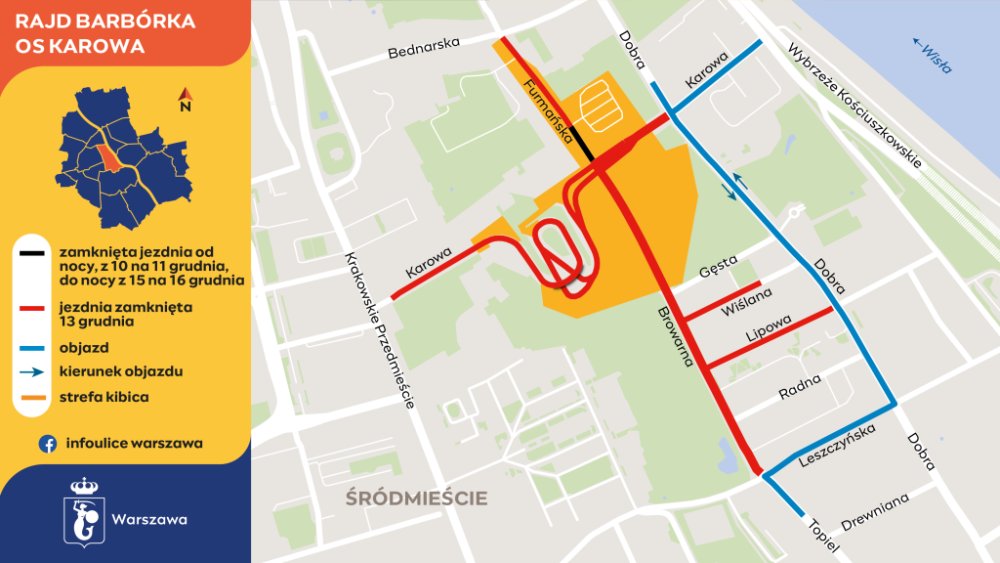 – W czasie montażu, od nocy ze środy na czwartek, z 10 na 11 grudnia, ulica Furmańska będzie zamknięta przy skrzyżowaniu z Karową. Kierowcy i piesi wrócą tu od nocy z poniedziałku na wtorek, z 15 na 16 grudnia – przekazuje Infoulice.