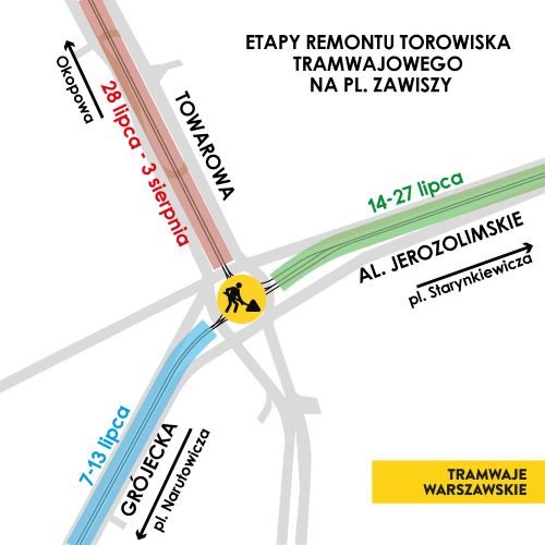 Remont na Placu Zawiszy: Utrudnienia i zmiany tras tramwajów od 7 lipca