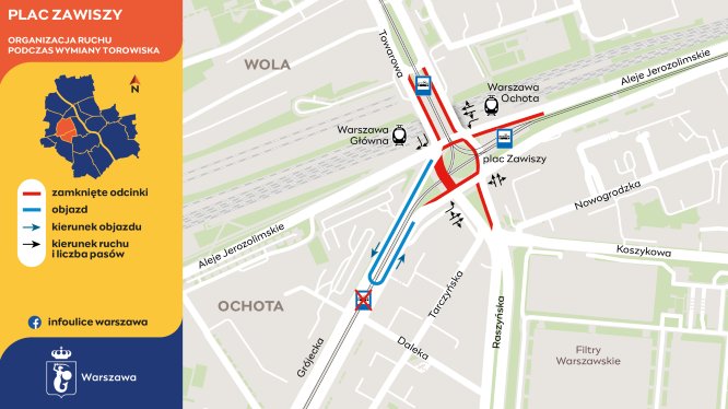 Już 7 lipca rusza długo zapowiadany remont jednego z ważnych węzłów komunikacyjnych w Warszawie – Placu Zawiszy. Choć Tramwaje Warszawskie chwalą się innowacyjną technologią prefabrykowanych płyt betonowych, które mają skrócić czas prac z trzech miesięcy do czterech tygodni, dla wielu pasażerów i kierowców oznacza to duże utrudnienia
