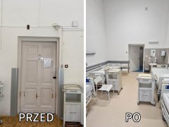 odnowienie sal dla chorych w dwóch oddziałach, wymianę podłóg, drzwi i instalacji oraz montaż