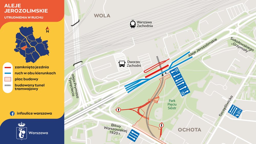 Zmiany w ruchu na Alejach Jerozolimskich – budowa tunelu tramwajowego wkracza w kolejny etap