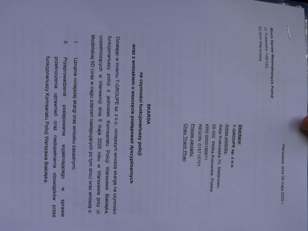 Protestujący oficjalnie złożyli „Skargę na czynności funkcjonariuszy policji, wraz z wnioskiem o wszczęcie postępowań dyscyplinarnych”.
