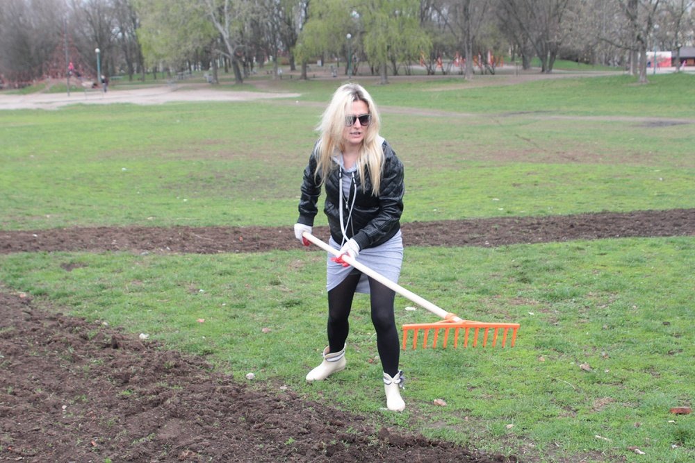 Kilkadziesiąt osób, wolontariusze Greenpeace, Fundacja Łąka, mieszkańcy dzielnicy spotkali się o godzinie 10, żeby przygotować Pszczołę do obsiania nasionami łąki kwietnej. Przed posianiem nasion, trzeba było przygotować ziemię. Więc ruch poszły grabie i inne narzędzia ogrodnicze. Zbierano też śmieci.