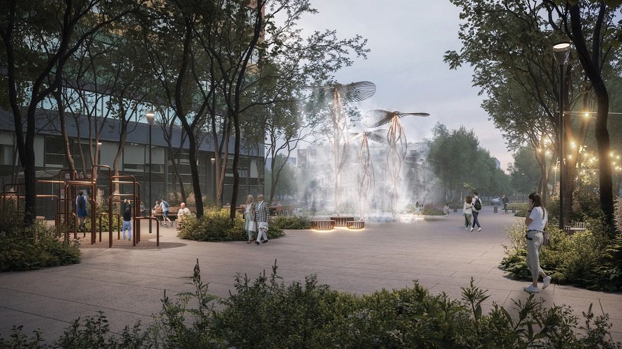 Właśnie na tym placu projektanci zaproponowali integracyjne funkcje miejskie – ogród różany z pergolą przy Szpitalu Praskim, podkreślone wejście do katedry św. Floriana, miejsca odpoczynku, rekreacja obok legendarnego baru „Rusałka”. To tu pojawi się także instalacja artystyczno-wodna, nawiązująca do rzemieślniczych tradycji Pragi, która w upalne dni zapewni ulgę, a jednocześnie stanie się nowym miejskim punktem spotkań.