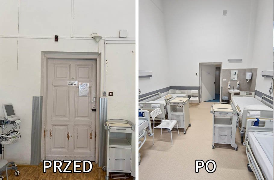 odnowienie sal dla chorych w dwóch oddziałach, wymianę podłóg, drzwi i instalacji oraz montaż